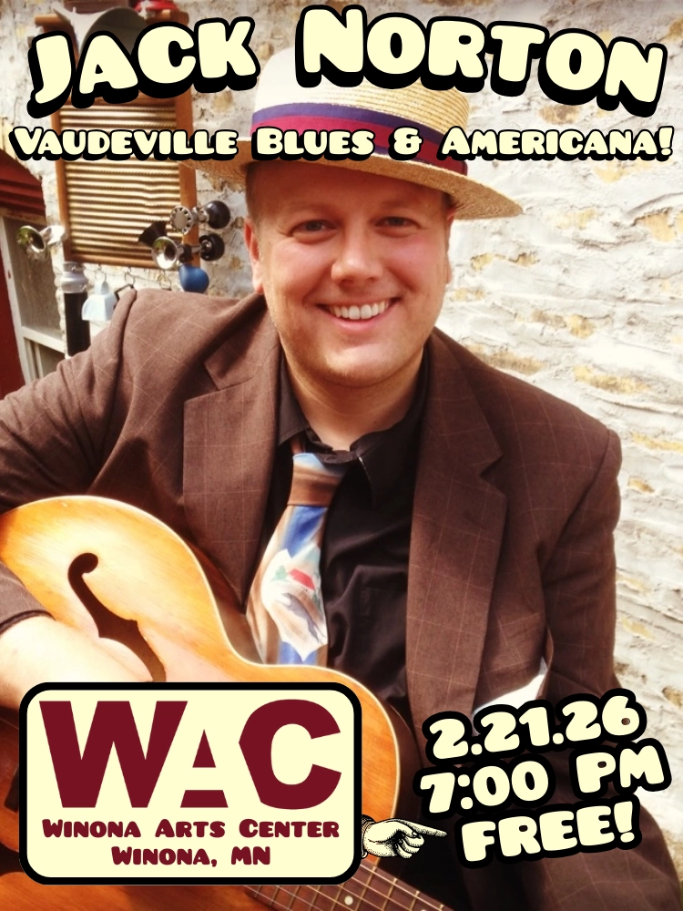 Meet Jack Norton, Emmy Award winning singer/songwriter, and musical purveyor of vaudeville blues, ragtime, and vintage Americana folk. He’s been called, “one of the most entertaining acoustic musicians in the Midwest” by the Minneapolis Star Tribune – and was named “Artist of the Year”. Norton has been nominated for numerous Minnesota Music Awards as a folk musician.